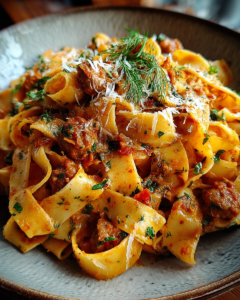 Cremige kalabrische Chili-Pappardelle mit Wurst und Fenchel sind eine