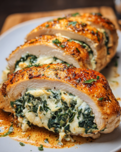zartes Geflügelfleisch mit einer aromatischen Mischung aus Frischkäse und Spinat und