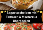 6. Fertigstellen: Du kannst die Baguettescheiben entweder direkt servieren oder für 5 Minuten im Ofen bei 180°C backen, damit der Mozzarella leicht schmilzt und das Baguette knusprig wird.